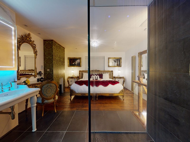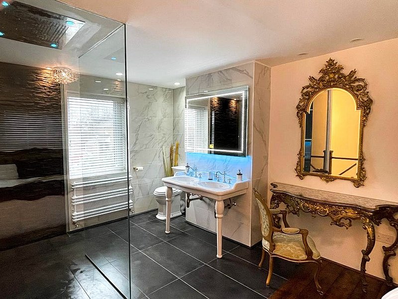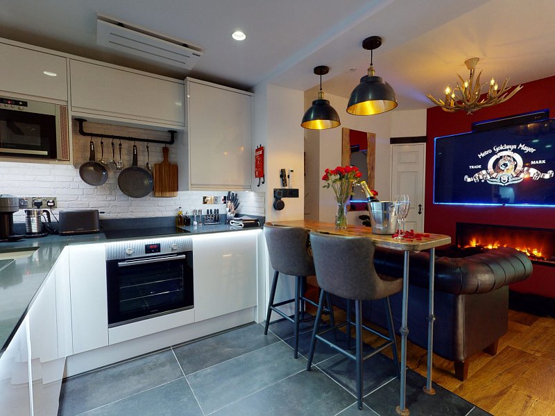 The Henry Suite can only be described as the terrace house with a twist; ordinary on the outside but extraordinarily luxurious on the inside. The property boasts a 7ft large emperor french bed, wall to ceiling ajoining shower glass shower encasement and a 800x600 ceiling rainforest shower head, cinematic lounge with an impressive 75” 4K Ultra-HD smart TV, video conferencing system, modern fully equipt kitchen and your own private 32amp hot tub.